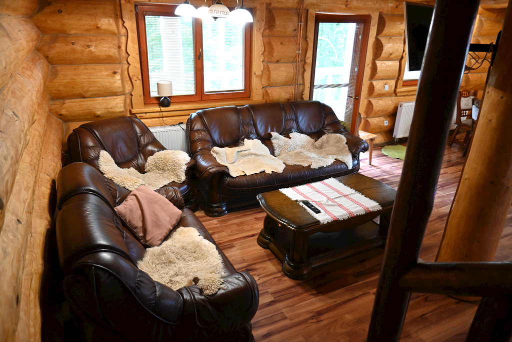 Štýlové ubytovanie v zrube s malou posilňovňou a vonkajším posedením